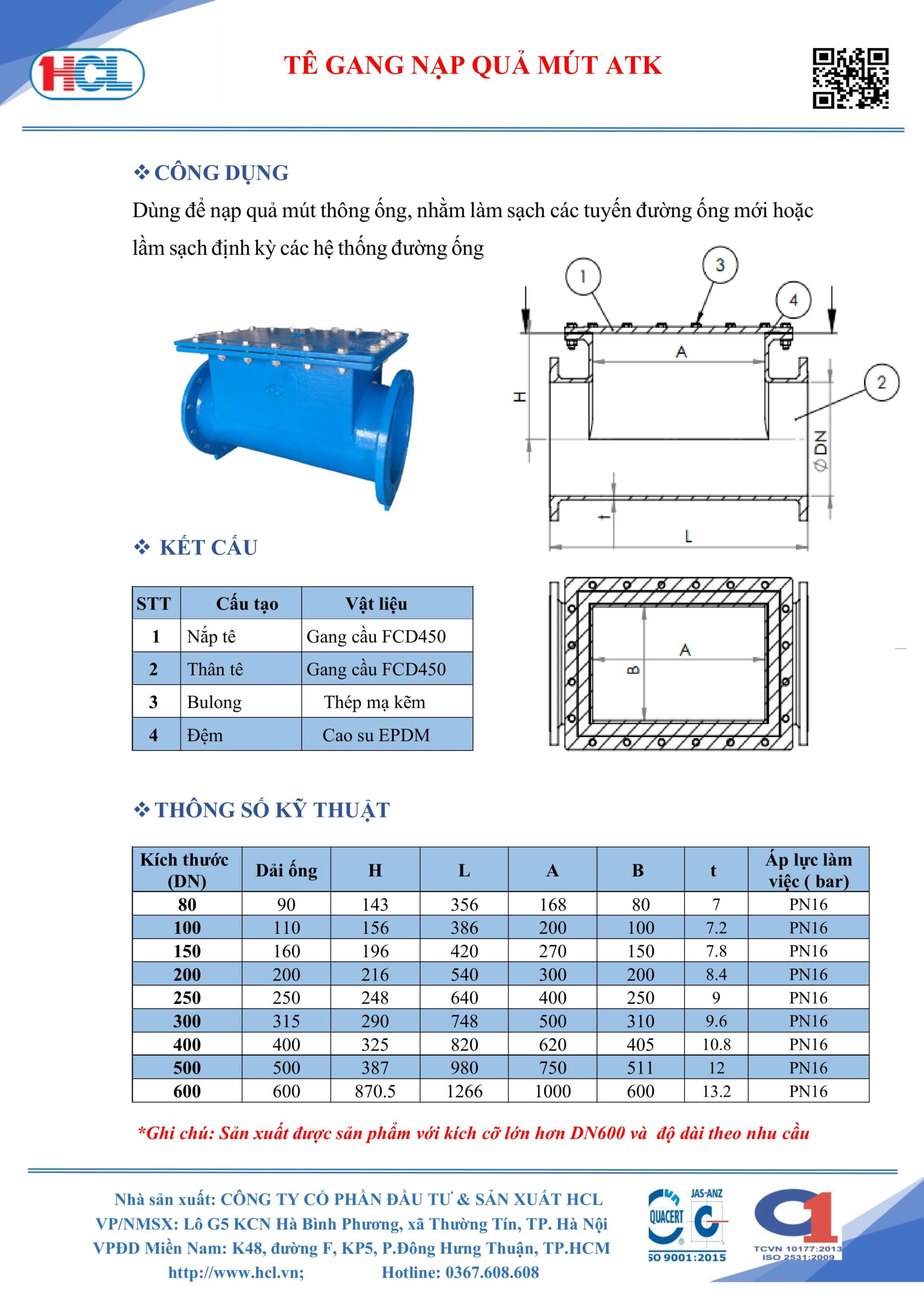 Tê gang nạp quả mút hiệu ATK do công ty HCL sản xuất dùng để nạp quả mút thông ống, nhằm làm sạch các tuyến đường ống mới hoặc lầm sạch định kỳ các hệ thống đường ống.