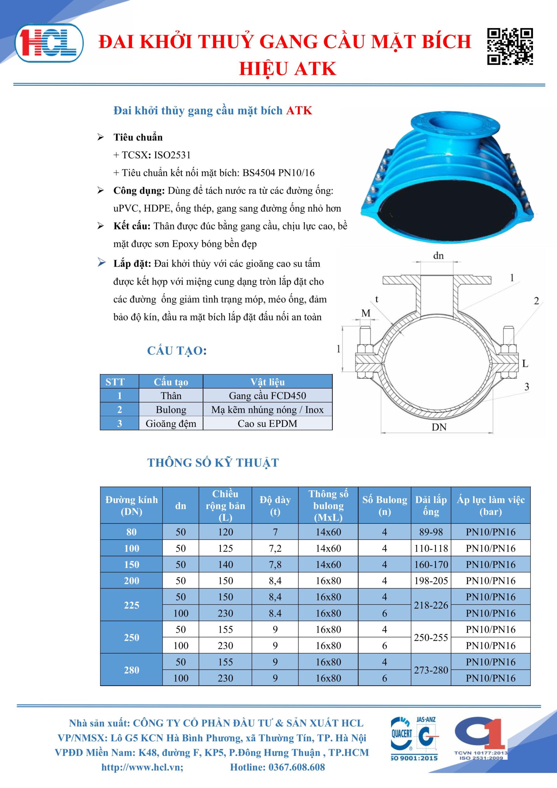 Sản phẩm Tê ốp gang cầu mặt bích hiệu ATK được sản xuất theo tiêu chuẩn ISO 2531-2009. Sơn Epoxy bóng bền đẹp